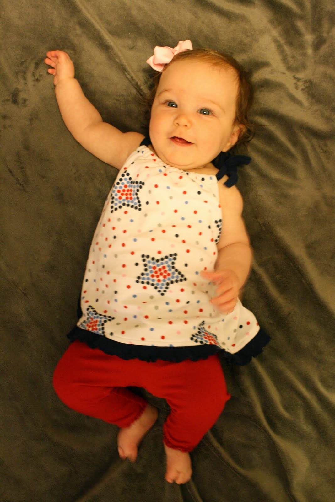 7. Since Evie's "learned" to roll from her tummy to her back, a few times we have come in to find her on her back (she's a tummy sleeper) when she wakes up from a nap. She usually has a bewildered look on her face, like what the heck is going on? Last night when I got up for her 1:30 am feeding, I found her on her back, with her head at the foot of the crib! Now that's some rolling and tumbling. Who knows how long she had been like that. So now my problem becomes teaching her how to roll back onto her tummy. You know, so I don't get "summoned" multiple times a night by a chubby little baby wondering why she's awake and can see her toes.